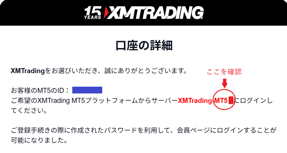 1.メールに記載されている「MT5のID」