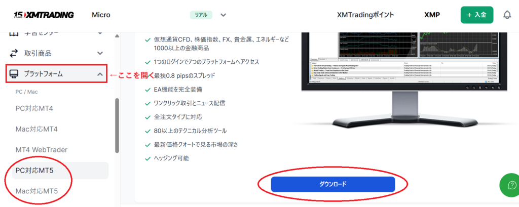 ② MT5をダウンロードする