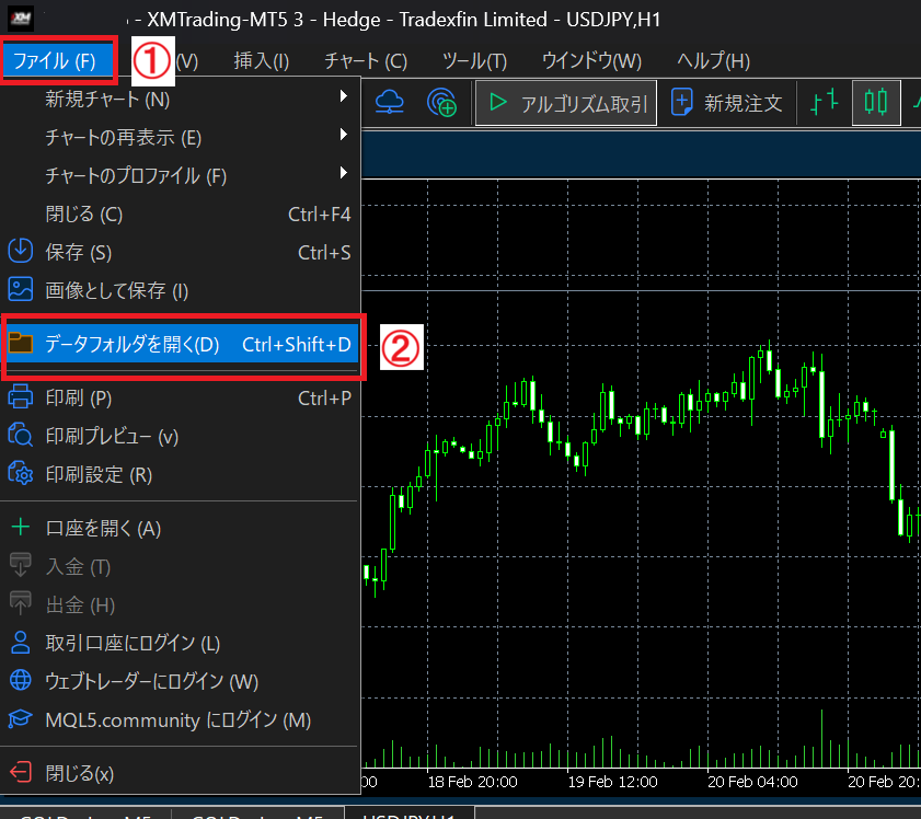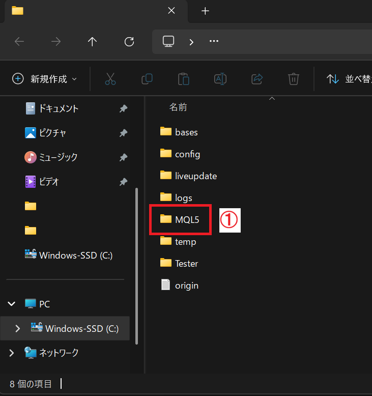 ここからEAを入れるフォルダに移動します。