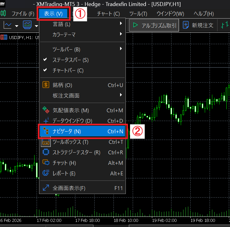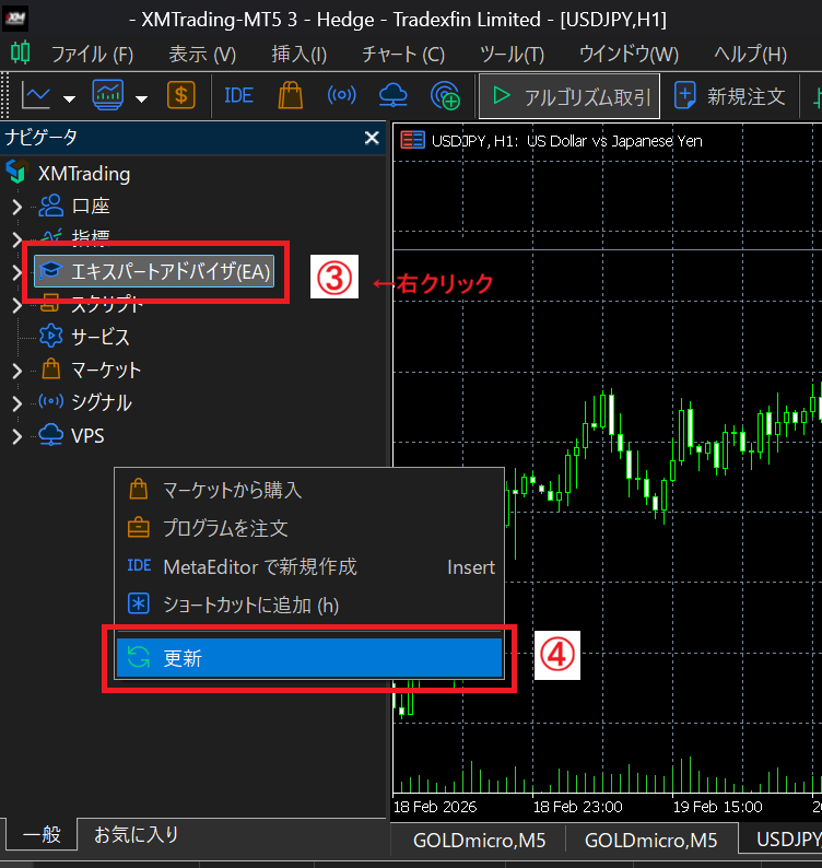 MT5左側の「ナビゲーター」内で右クリックし、