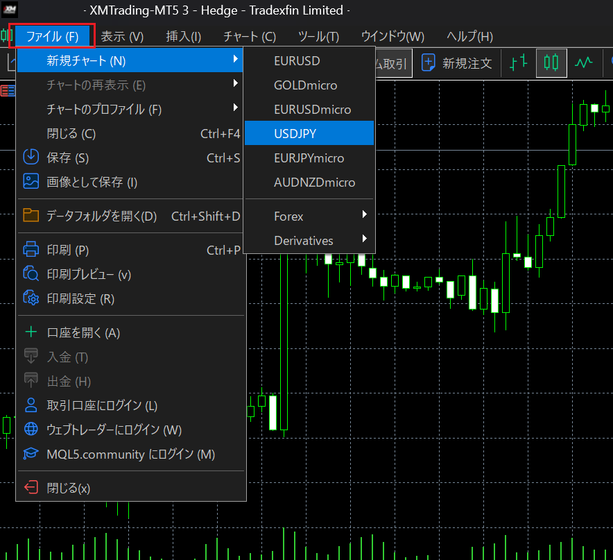 ▶「ファイル」→「新規チャート」